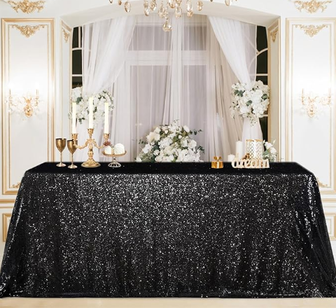 90"x132" Black Sequin Tablecloth