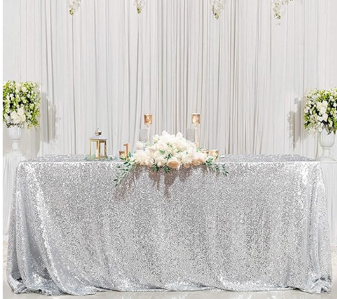 90"x132" Silver Sequin Sequin Tablecloth