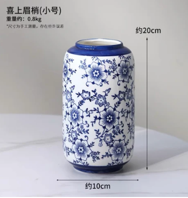 Ceramic Urn - Floral Navy Blue-White quantity