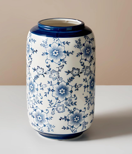 Ceramic Urn - Floral Navy Blue-White
